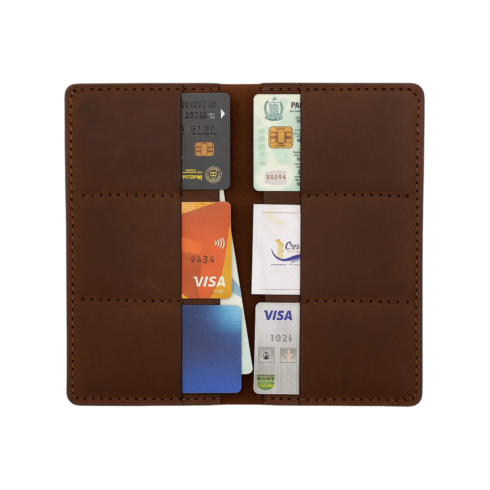 Meticulously crafted with care, this handmade bifold long wallet seamlessly combines practicality and sophistication. Constructed from high-quality full-grain leather, it’s designed to evolve over time, forming a distinctive patina that reflects its journey. Ideal as a functional accessory for daily use or a thoughtful gift, this wallet is made to leave a lasting impression.
