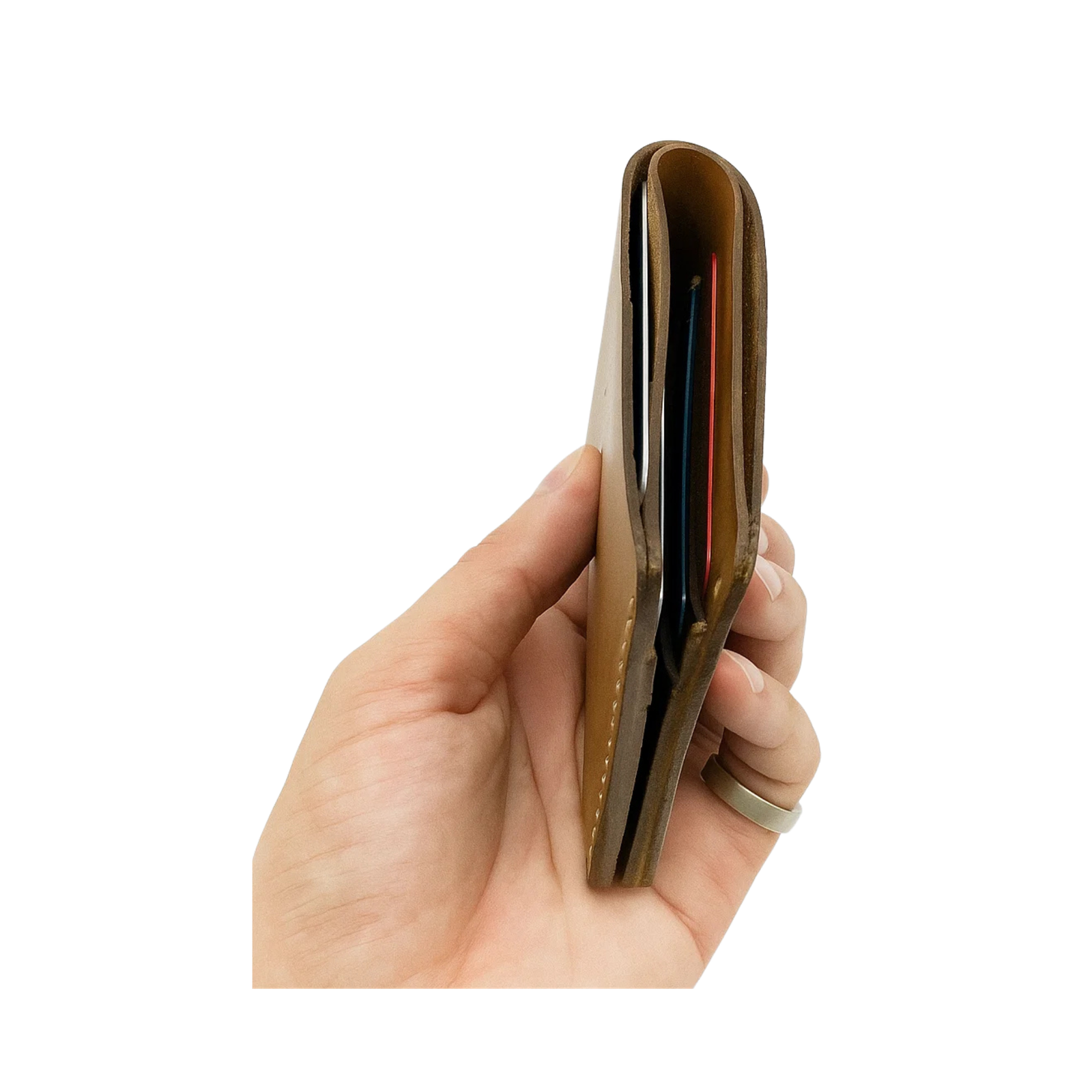 Crafted from Oil Pull-Up Leather, this wallet offers a rich, vintage look that improves with age. The material’s unique finish enhances its durability, creating a rugged yet sophisticated accessory.