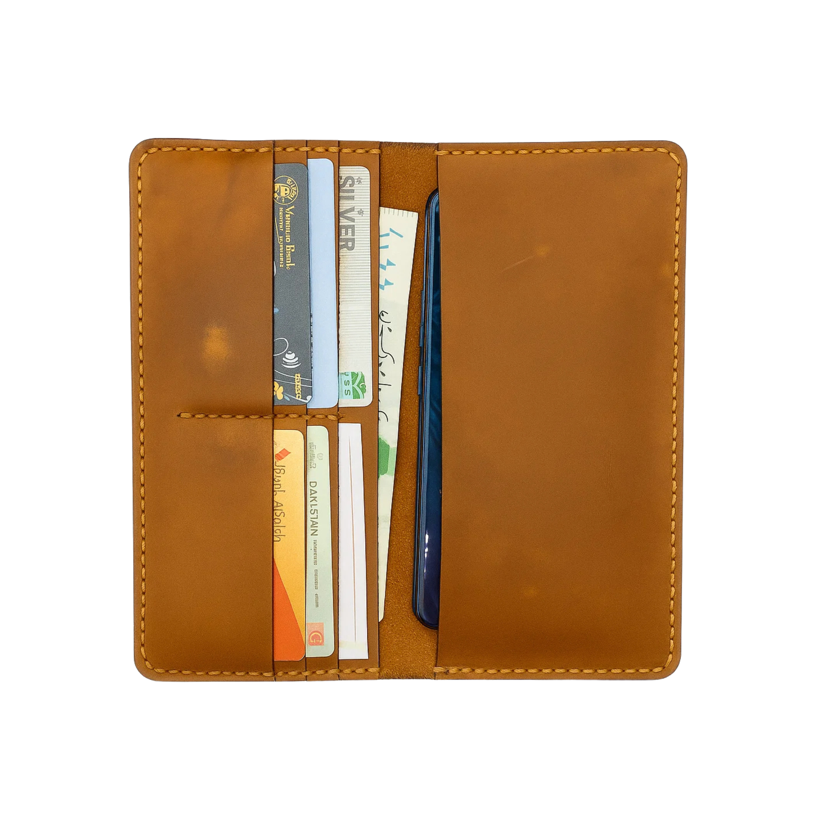 The Black Long Wallet is made from premium bifold leather, offering durability and a smooth finish that improves with age.